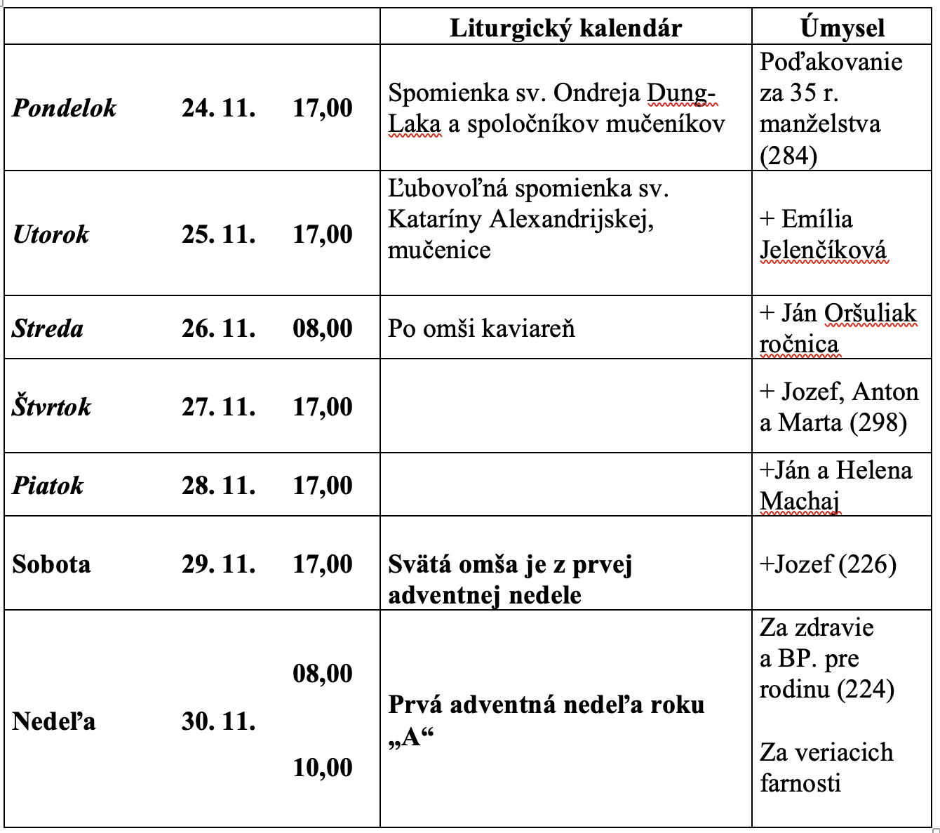 OBDOBIE CEZ ROK: 24. 11.– 30. 11. 2025