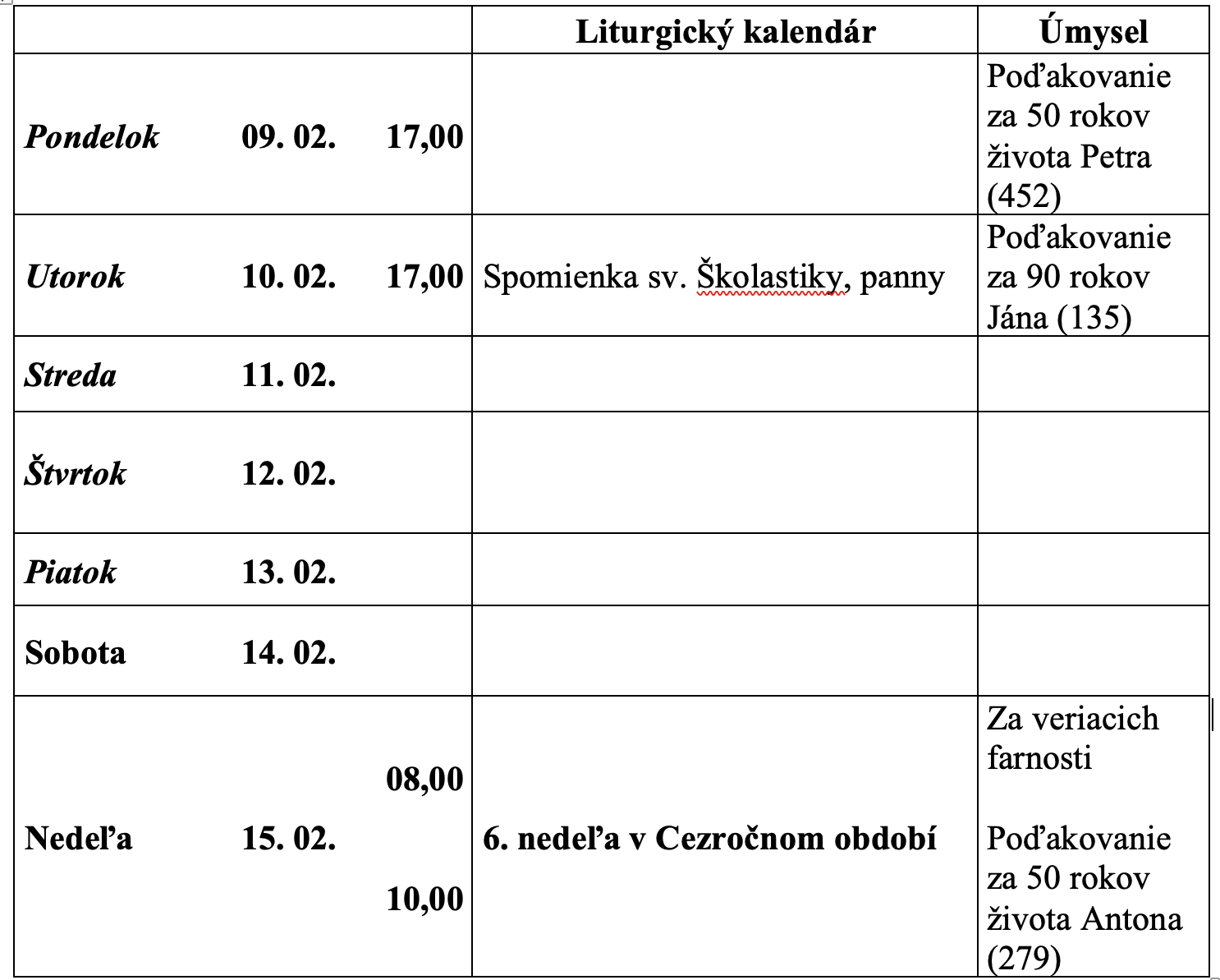 OBDOBIE CEZ ROK: 09.02.2026 – 15.02.2026