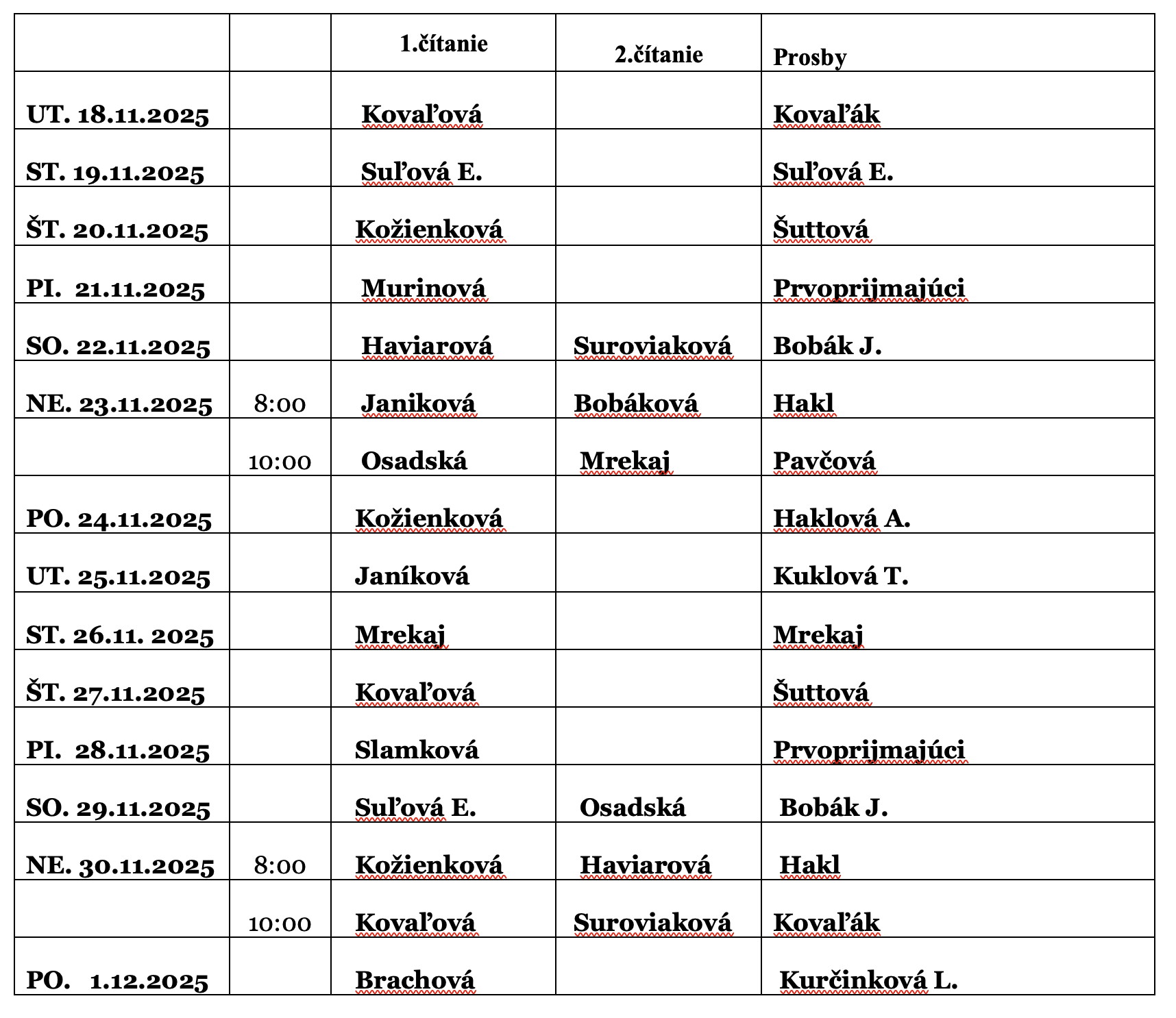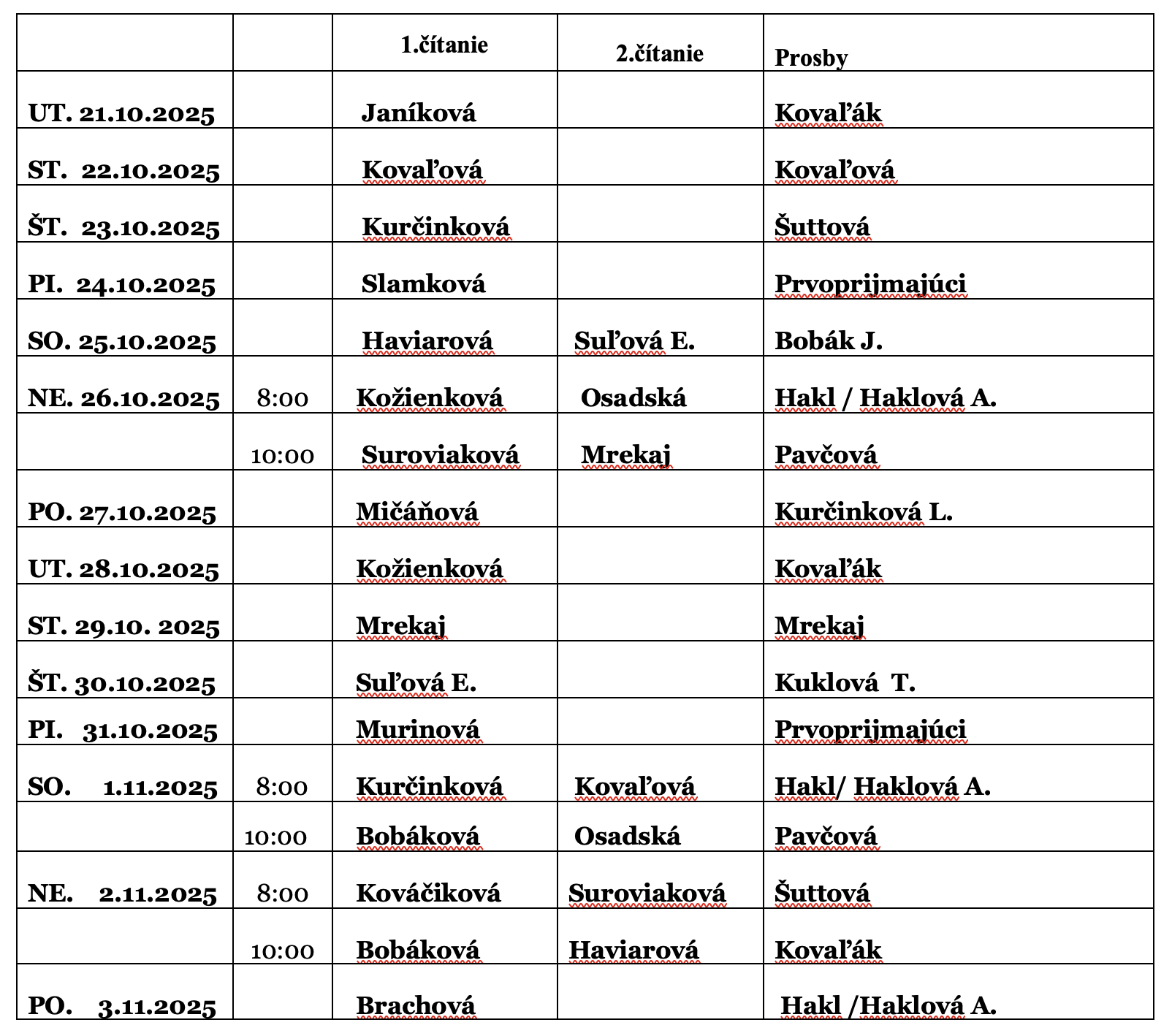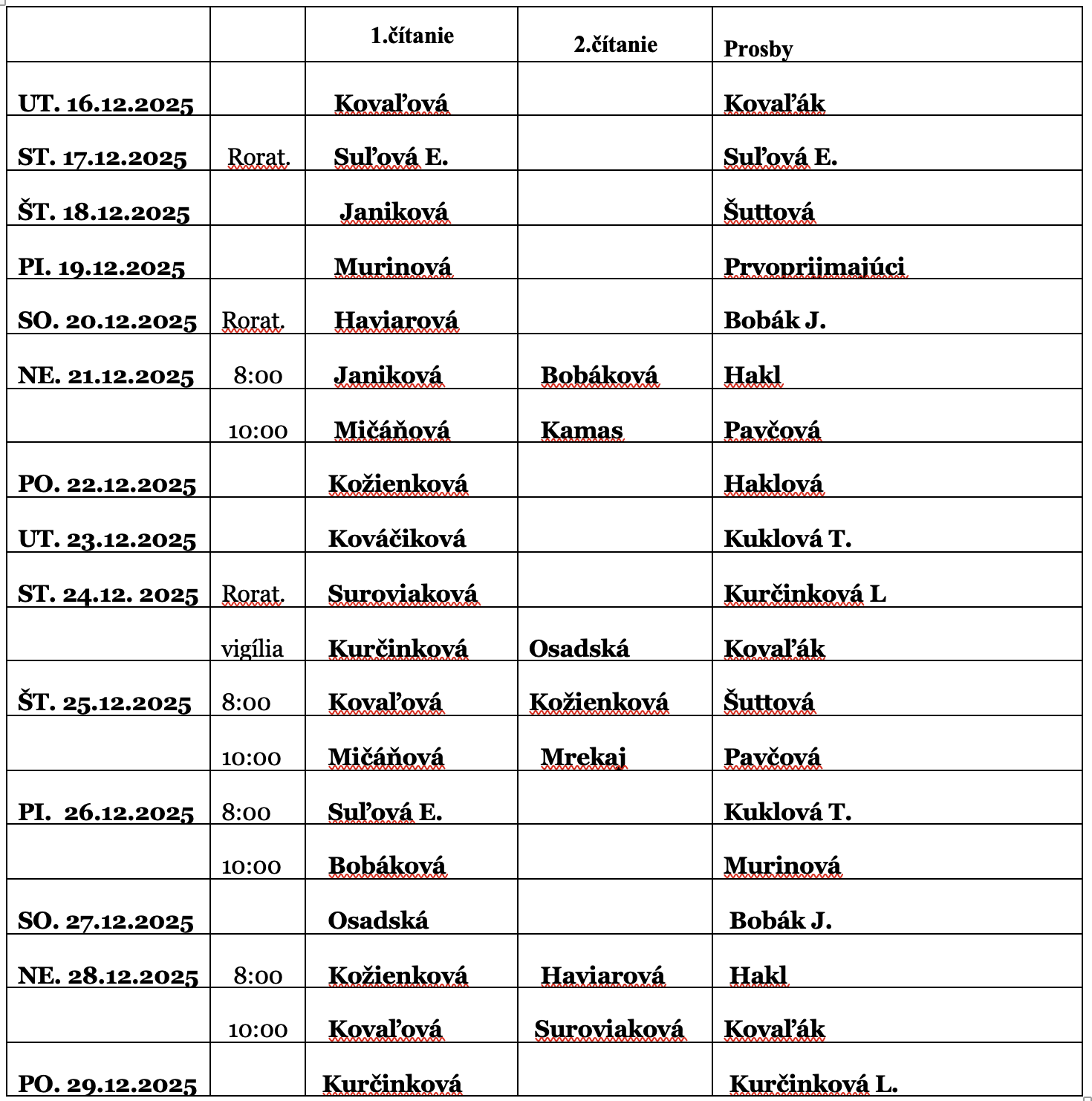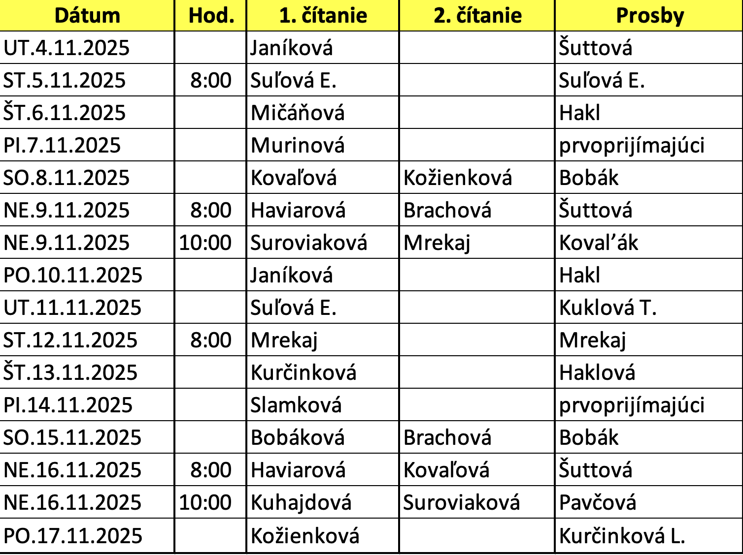 Rozpis lektorov